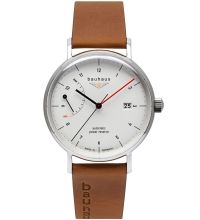 Zusätzliche Freude an Ihrer neuen Bauhaus Uhr wird Ihnen das hochwertig verarbeitete Armband aus Kalbsleder – Farbe: Braun – mit Dornschließe bereiten. Das Kalbsleder-Armband bietet einen hohen Tragekomfort und kann bis zu einem maximalen Handgelenkumfang von 220 mm getragen werden.