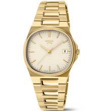 Einen weitgehenden Schutz vor unbeabsichtigten Kratzern und Blessuren bietet das Uhrenglas vom Typ "Saphirglas, entspiegelt". Darunter zeigt sich das Zifferblatt Ihrer neuen Traumuhr in der Farbe Gold.