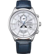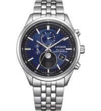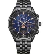 Das Herzstück dieses Zeitmessers ist ein Solar Uhrwerk (Quarz), das, wie für Citizen Uhren üblich, eine präzise Zeitmessung garantiert und folgende Funktionen bereitstellt: Stunde, Minute, Sekunde, Datum, Chronograph, Mondphase, Funkuhr, 24-Stunden, Solar, Ewiger Kalender.