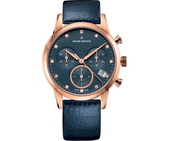 Quarz Uhrwerk (mit Batterie), das, wie für Claude Bernard Uhren üblich, eine präzise Zeitmessung garantiert und folgende Funktionen bereitstellt: Stunde, Minute, Sekunde, Datum, Chronograph.