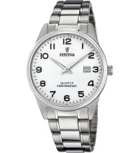 Quarz Uhrwerk (mit Batterie), das, wie für Festina Uhren üblich, eine präzise Zeitmessung garantiert und folgende Funktionen bereitstellt: Stunde, Minute, Datum.