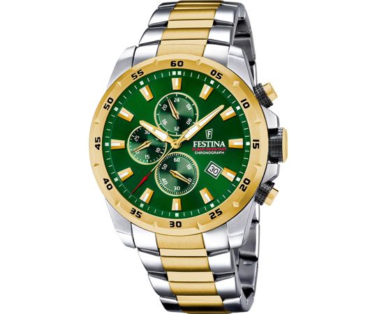 Quarz Uhrwerk (mit Batterie), das, wie für Festina Uhren üblich, eine präzise Zeitmessung garantiert und folgende Funktionen bereitstellt: 24-Stunden, Chronograph, Datum, Minute, Sekunde, Stunde.