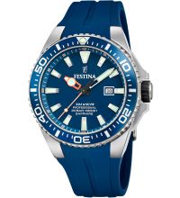 Zusätzliche Freude an Ihrer neuen Festina Uhr wird Ihnen das hochwertig verarbeitete Armband aus Silikon – Farbe: Blau – mit Dornschließe bereiten. Das Silikon-Armband bietet einen hohen Tragekomfort und kann bis zu einem maximalen Handgelenkumfang von 225 mm getragen werden.