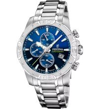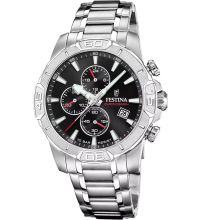 Quarz Uhrwerk (mit Batterie), das, wie für Festina Uhren üblich, eine präzise Zeitmessung garantiert und folgende Funktionen bereitstellt: Stunde, Minute, Sekunde, Datum, Chronograph, 24-Stunden, Tachymeter.