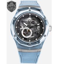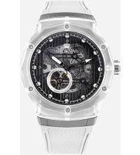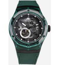 Das Runde Gehäuse ist 45 mm breit sowie 13 mm hoch und schmückt, natürlich abhängig vom individuellen Geschmack, nahezu jedes Handgelenk. Vom Gehäuse hebt sich die Feststehende Lünette dezent ab. Beim Gehäuseboden der Uhr handelt es sich um einen Glasboden, verschraubt, der den Schlusspunkt für ein ansprechendes Design setzt.