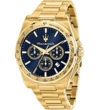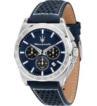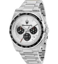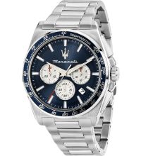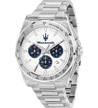 Quarz Uhrwerk (mit Batterie), das, wie für MASERATI Uhren üblich, eine präzise Zeitmessung garantiert und folgende Funktionen bereitstellt: Stunde, Minute, Sekunde, Datum, Chronograph, 24-Stunden, Tachymeter.