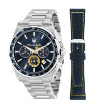 Quarz Uhrwerk (mit Batterie), das, wie für MASERATI Uhren üblich, eine präzise Zeitmessung garantiert und folgende Funktionen bereitstellt: Stunde, Minute, Sekunde, Datum, Chronograph, 24-Stunden, Tachymeter.