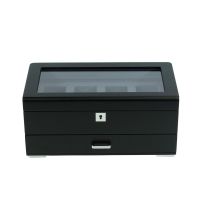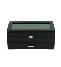 Uhrenbox schwarz [4] mit grauem Samt + Schublade