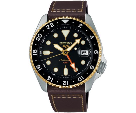 aus der Modell-Serie 5 Sports GMT Automatik 43mm 10ATM. Die GMT Funktion zur Anzeige einer zweiten Zeitzone ist anhand des pfeilförmigen und farblich hervorgehobenen zweiten Stundenzeigers komfortabel ablesbar. Heimatzeit und Ortszeit behalten Sie so immer im Blick. Eine perfekte Wahl, wenn Sie einen Zeitmesser mit einem