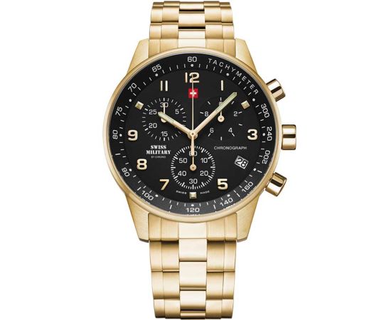 Quarz Uhrwerk (mit Batterie), das, wie für Swiss Military by Chrono Uhren üblich, eine präzise Zeitmessung garantiert und folgende Funktionen bereitstellt: Chronograph, Datum, Minute, Sekunde, Stunde, Tachymeter.