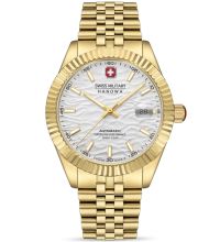 Zusätzliche Freude an Ihrer neuen Swiss Military Hanowa Uhr wird Ihnen das hochwertig verarbeitete Armband aus Edelstahl – Farbe: Gold – mit Faltschließe bereiten. Das Edelstahl-Armband bietet einen hohen Tragekomfort und kann bis zu einem maximalen Handgelenkumfang von 210 mm getragen werden.