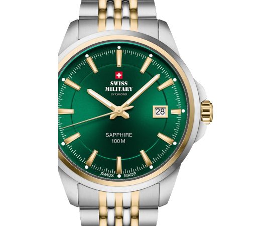 Einen weitgehenden Schutz vor unbeabsichtigten Kratzern und Blessuren bietet das Uhrenglas vom Typ "Saphirglas, entspiegelt". Darunter zeigt sich das Zifferblatt Ihrer neuen Traumuhr in der Farbe Grün. Zur Beleuchtung der Swiss Military by Chrono SM34104.06 tragen Leuchtzeiger, Leuchtindexe bei und ermöglichen eine gute Ablesbarkeit auch bei ungünstigen Lichtverhältnissen.
