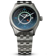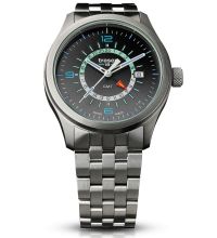 aus der Modell-Serie P59 Aurora GMT. Die GMT Funktion zur Anzeige einer zweiten Zeitzone ist anhand des pfeilförmigen und farblich hervorgehobenen zweiten Stundenzeigers komfortabel ablesbar. Heimatzeit und Ortszeit behalten Sie so immer im Blick. Eine perfekte Wahl, wenn Sie einen Zeitmesser mit einem