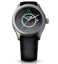 aus der Modell-Serie P59 Aurora GMT. Die GMT Funktion zur Anzeige einer zweiten Zeitzone ist anhand des pfeilförmigen und farblich hervorgehobenen zweiten Stundenzeigers komfortabel ablesbar. Heimatzeit und Ortszeit behalten Sie so immer im Blick. Eine perfekte Wahl, wenn Sie einen Zeitmesser mit einem
