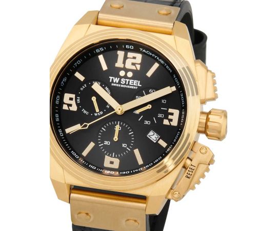 Quarz Uhrwerk (mit Batterie), das, wie für TW Steel Uhren üblich, eine präzise Zeitmessung garantiert und folgende Funktionen bereitstellt: Stunde, Minute, Sekunde, Datum, Chronograph, Wochentag.
