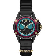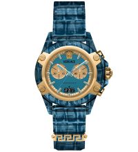 Quarz Uhrwerk (mit Batterie), das, wie für Versace Uhren üblich, eine präzise Zeitmessung garantiert und folgende Funktionen bereitstellt: Stunde, Minute, Sekunde, Datum, Chronograph.