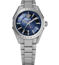 Quarz Uhrwerk (mit Batterie), das, wie für Versace Uhren üblich, eine präzise Zeitmessung garantiert und folgende Funktionen bereitstellt: Stunde, Minute, Sekunde, Datum, GMT.