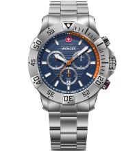 Swiss MadeQuarz Uhrwerk (mit Batterie), das, wie für Wenger Uhren üblich, eine präzise Zeitmessung garantiert und folgende Funktionen bereitstellt: Stunde, Minute, Sekunde, Datum, Chronograph.