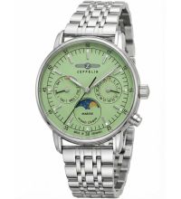 Quarz Uhrwerk (mit Batterie), das, wie für ZEPPELIN Uhren üblich, eine präzise Zeitmessung garantiert und folgende Funktionen bereitstellt: Datum, Minute, Mondphase, Sekunde, Stunde, Wochentag.