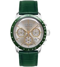Quarz Uhrwerk (mit Batterie), das, wie für ZEPPELIN Uhren üblich, eine präzise Zeitmessung garantiert und folgende Funktionen bereitstellt: Stunde, Minute, Sekunde, Datum, Chronograph, Tachymeter.